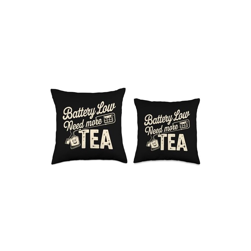 Funny Tea Shirt Low Battery Warning Need More Tea Throw Pillow