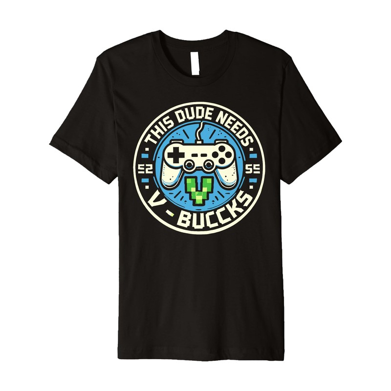 Funny This Dude Needs V-Bucks Will Work For Bucks Gamer Premium T-Shirt