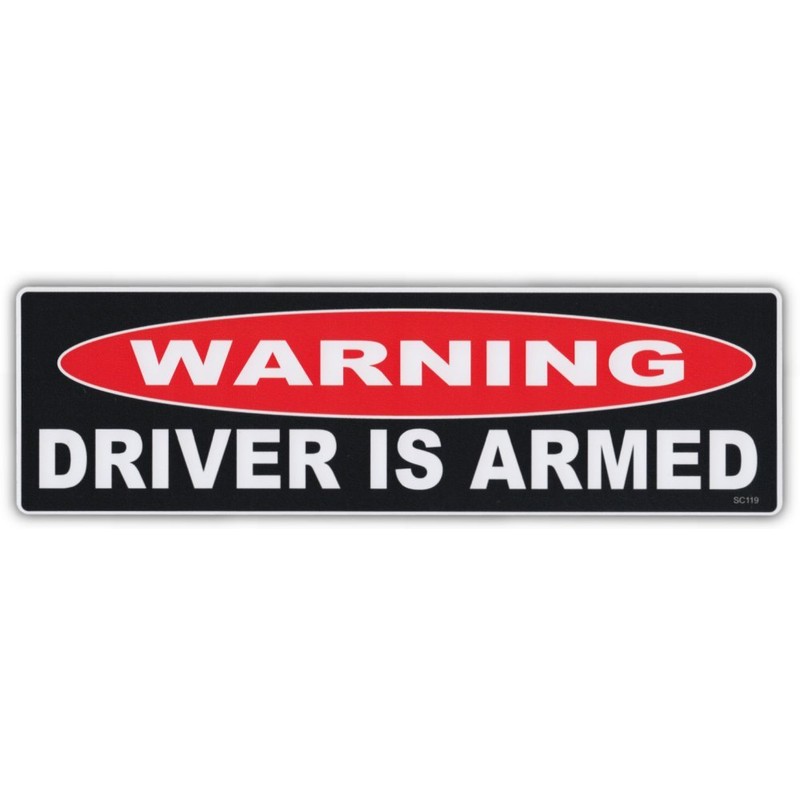 Funny Warning Bumper Stickers Decals: Driver is Armed | Pro Guns NRA