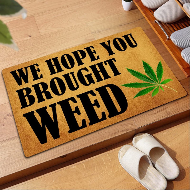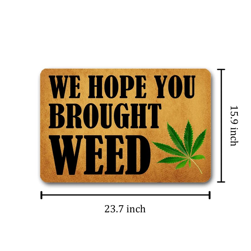 Funny Welcome Rugs for Entryway Front Porch Rugs We Hope You Brought Weed Doormat for Front Door Indoor Monogram Mats with Anti-Slip Rubber Back Novelty House Warming Gift Mat(23.7 X 15.9 in)