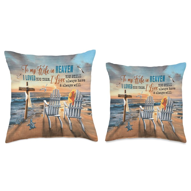 Funny Wife Gifts Humour Husband To My Wife in Heaven Sunset Chair Sea Turtle Throw Pillow, 16x16, Multicolor