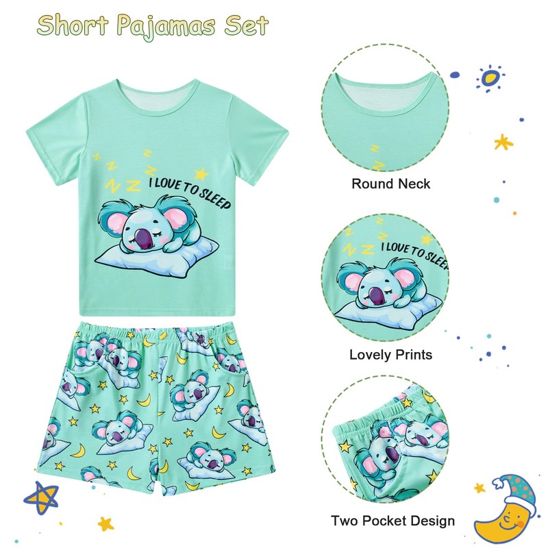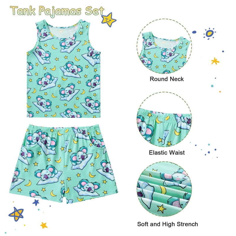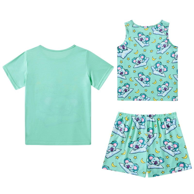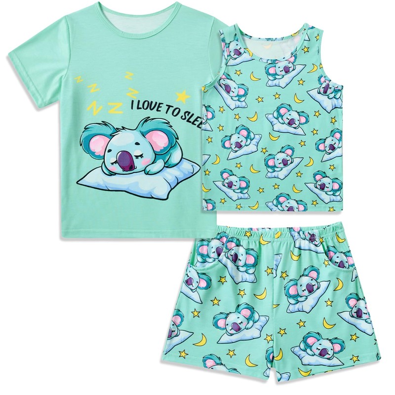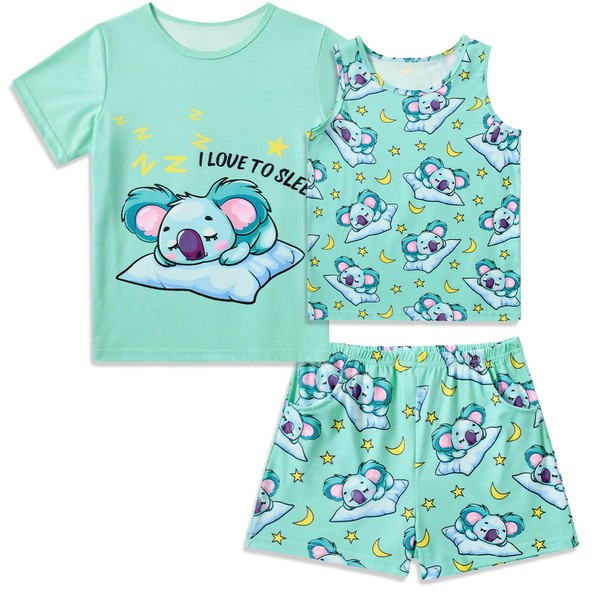 Funnycokid Girls Pajamas Size 7-8 Koala Short Sleeve Shirts 3 Pieces Kids Summer Pjs Set Loungewear Tank Top Shorts Sleepwear Size 7-8