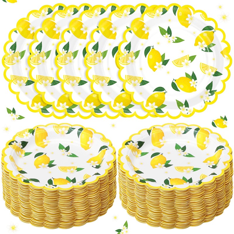 - Special Design: this yellow lemon plates are composed of a lovely lemon pattern and bright yellow design accented with white lemon flowers and green lemon leaves; Bright colors add a touch of taste to most events without being over the top; Vibrant patterns and bright colors create a sweet atmosphere decorate your party better