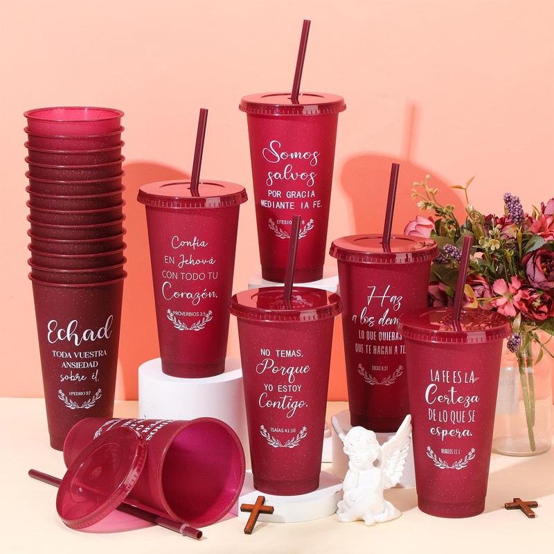• Package Includes: you will receive 24 Spanish christian plastic cups with lids and straws; 12 styles, 2 pieces for each style; Sufficient quantity to meet your needs, can be shared with family and friends
