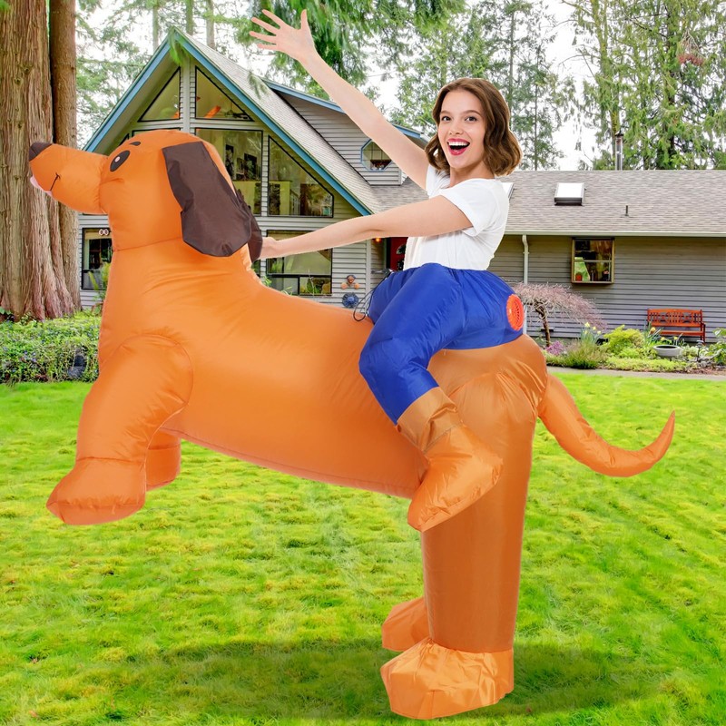 - Wide Occasions: whether you are at a lawn party, zoo, company celebration or club, this adult dachshund inflatable costume will make you the focus of the party; Suitable for TV shows, carnivals, weddings, Halloween, Christmas, birthdays and role-playing parties