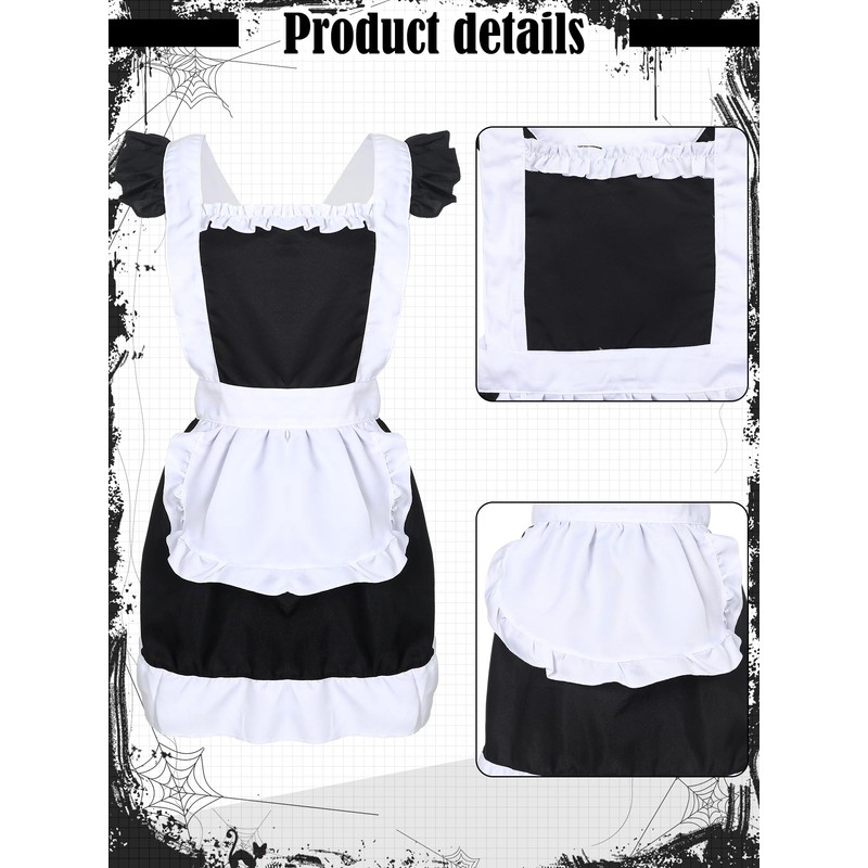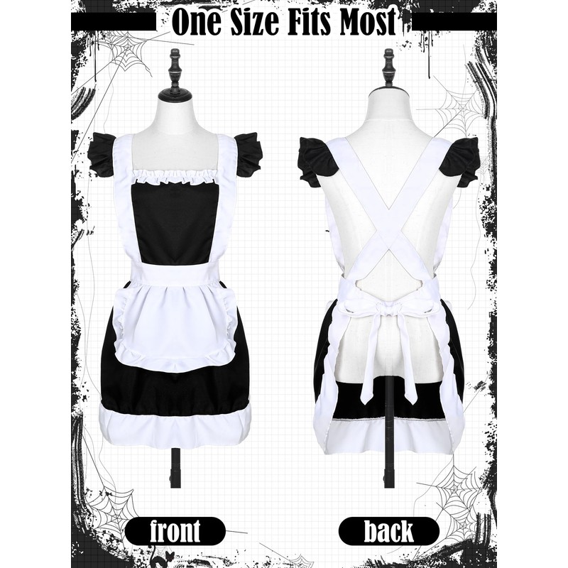 - Universally Fitting Maid Costume: experience a blend of comfort and style with our designed fancy maid costume; The universal size ensures suitability for most sizes, and the adjustable straps at the back provide a comfortable fit; Ideal for a cafe, restaurant, store attire or a standout Halloween cosplay outfit