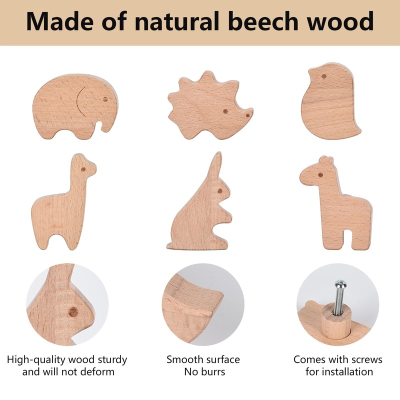 - 【Set Includes】6 wooden knobs, we supply 6 32mm long screws for easy installation of these animal knobs for storage cabinets. This is a great combination for you to choose from.