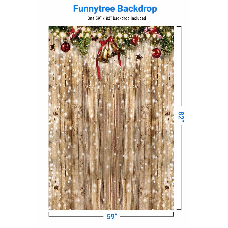 Funnytree 5x7ft Christmas Wooden Wall Photography Backdrop Glitter Bokeh Snow Winter Merry Xmas Party Background Rustic Wood Baby Shower Kids Birthday Portrait Banner Decor Photo Booth Studio