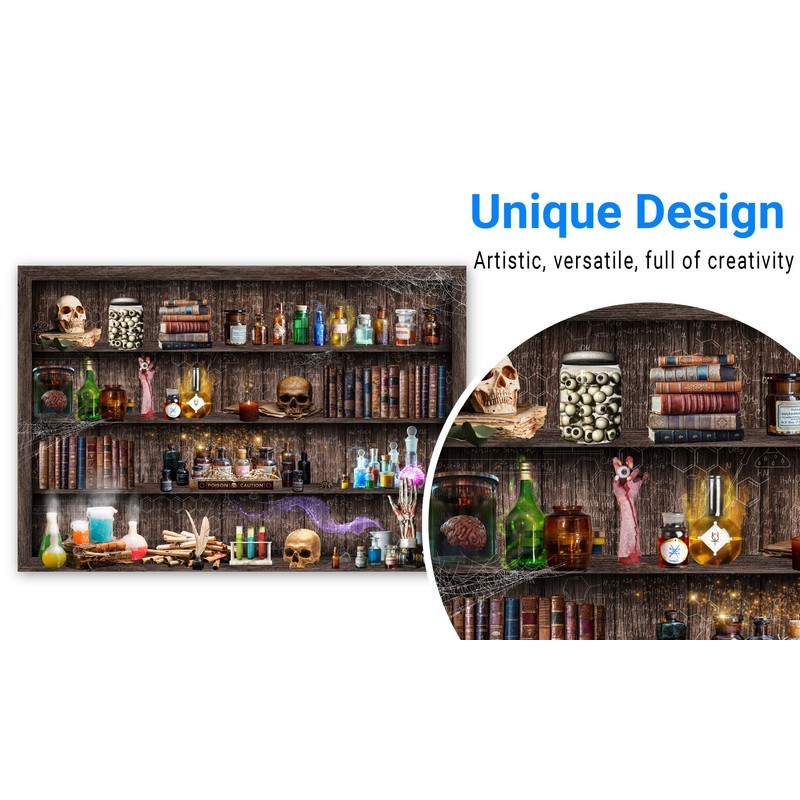 Funnytree 82" x 59" Mad Scientist Laboratory Backdrop for Kids Boy Halloween Spooktakular Creepy Skull Poison Apothecary Witch Kitchen Birthday Baby Shower Party Supplies Decorations Banner Background