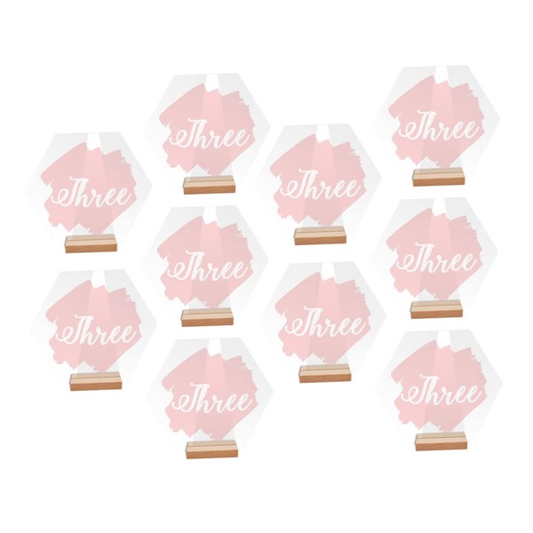 FUNOMOCYA 10pcs Wedding Place Sign Hexagonal Table Numbers with Wooden Base Decorative Table Numbers for Events Birthday Christmas Thanksgiving