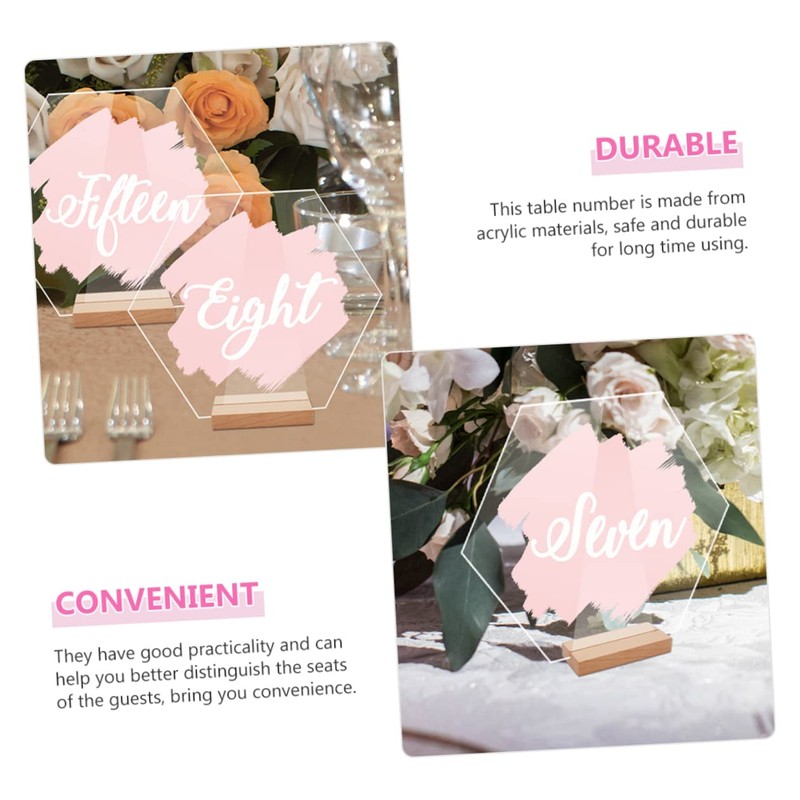 wedding place sign Made of acrylic materials, safe and light for service time.wood signs That's because they can satisfy your needs.restaurant table numbers If you are in search of delicate wedding table numbers, then you can take a look at our product.woodsy decor Not easy to deform or break, with wooden stands, can bring you convenience.standing table number Perfect for various parties, family gatherings, cafes, dinners, restaurants and more