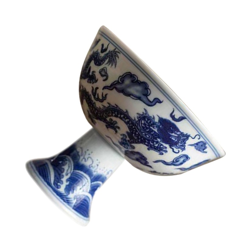 FUNOMOCYA Ceramic High Foot Tea Cup Blue and Design Tea Drinking Cup for Daily Use or