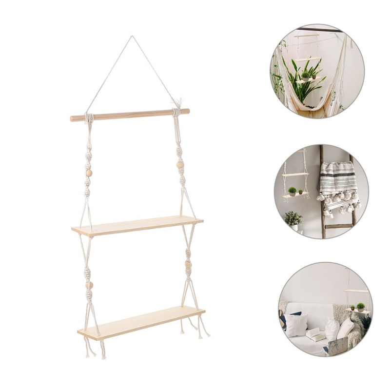 - This wall decorative hanging rack will bring a simple but elegant view to your home kitchen, bedroom, study room, office, etc macrame wall hanging shelf.