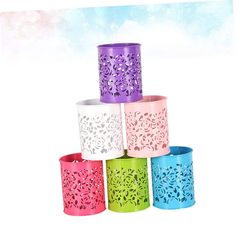 FUNOMOCYA Sturdy Metal Flower Pencil Container Pen Pot Holder 6pcs Set for Desk Decor Organization