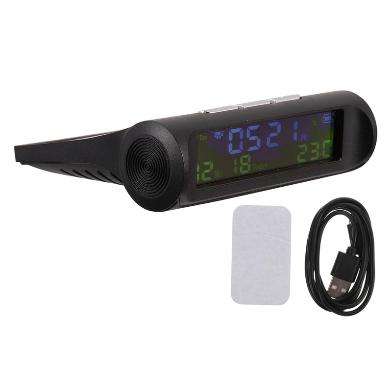 - Car solar clock: the product built-in year calendar, calendar, time, week, temperature display.