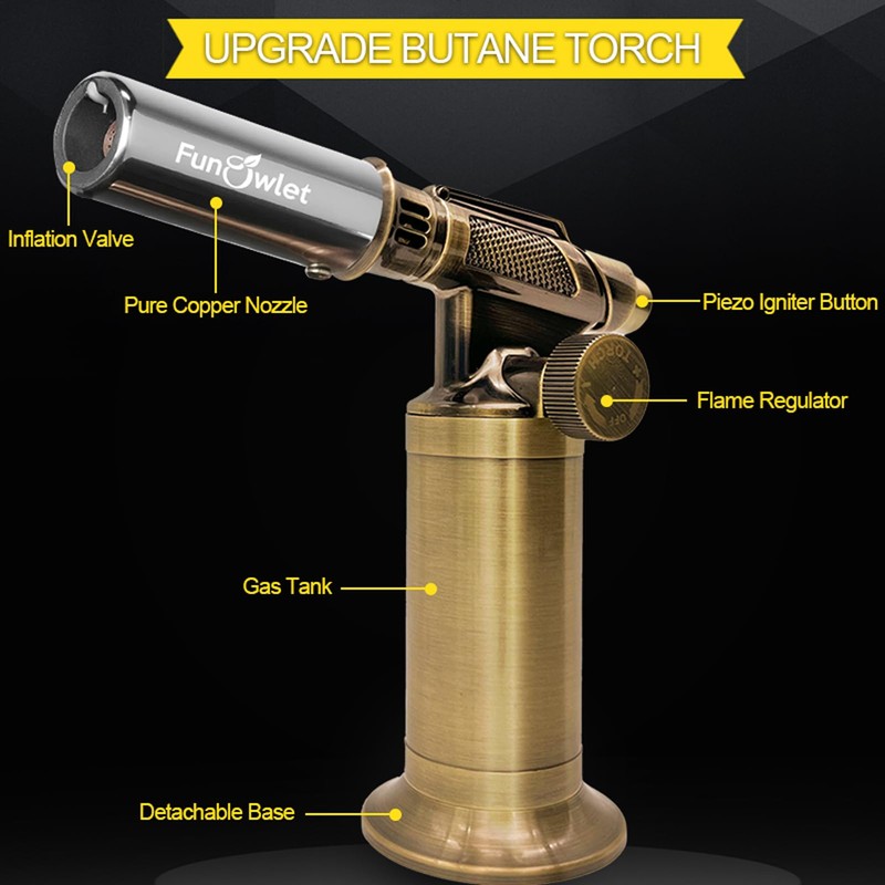 FunOwlet - Encendedor recargable de butano, soplete de metal de alta calidad con llama de precisión ajustable para cocina culinaria, crema brulee, soldadura industrial, gas no incluido