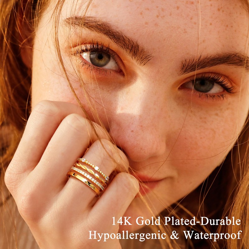 - Premium Quality: Crafted with 14K gold-plated non-tarnish material, ensuring each ring maintains its luster. Perfect for women desiring durable elegance in stackable rings and gold rings for women
