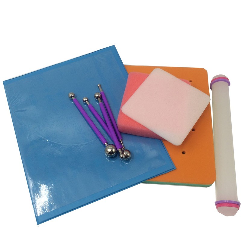 - Include rolling pin for rolling paste or create curves of natural petal shape, pads for different shaping of flowers and leaves,storage board to prevent fondant or gumpaste drying