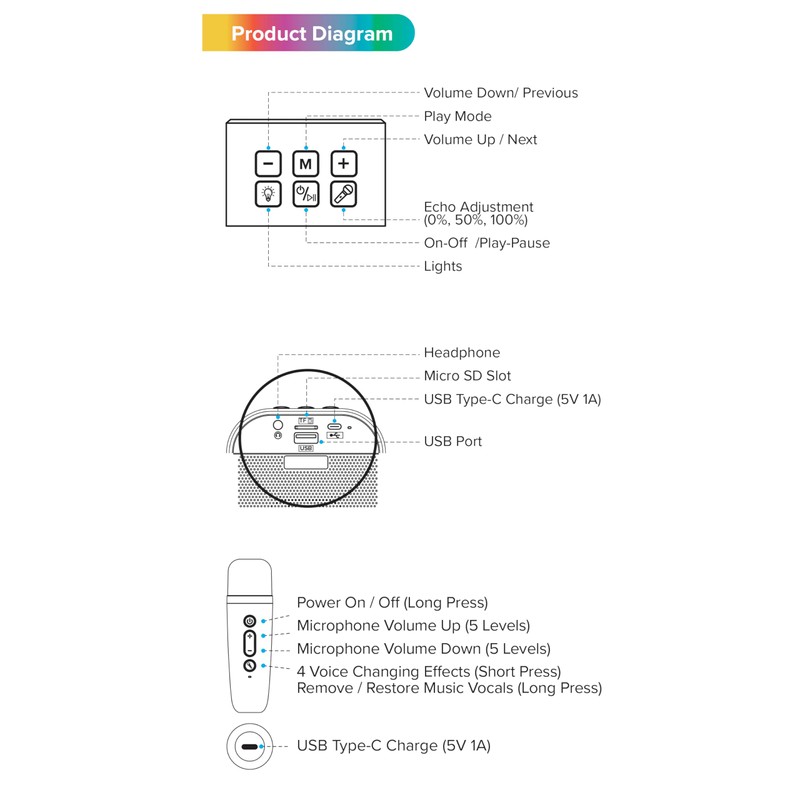 - 🎶 Compact & Portable: With a tiny size of just 7 x 7 x 7 cm, this mini karaoke machine fits in the palm of your hand! Take it with you anywhere for instant fun.