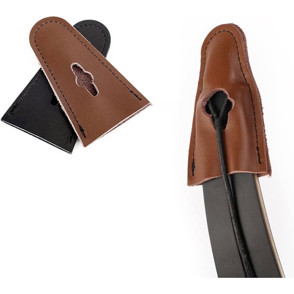 FUNTRESS Archery Recurve Bow Limb Protector Leather Guard Protector End Replacement Caps for Traditional Bow Longbow(1 Pair) (Black)
