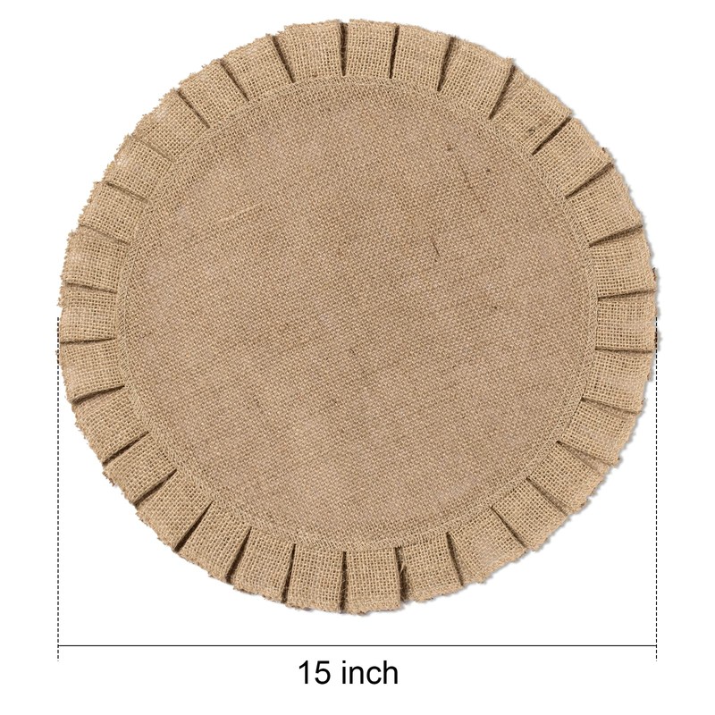 FunWheat Burlap Round Braided Placemats Set of 6 for Dining Tables 15 Inch Heat Resistant Jute Table Mats Farmhouse Woven Fabric Natural Place mats for Decoration(Ruffled Lace)