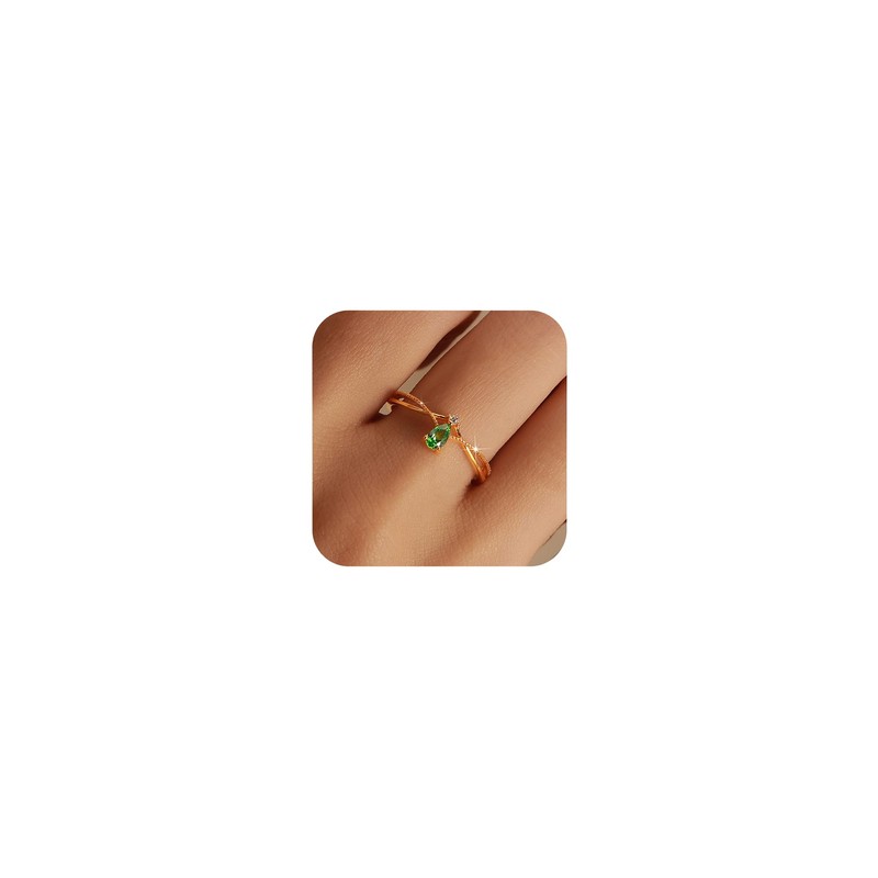 - May birthstone ring:The emerald birthday stone represents May, and you can give gifts that belong to May to your friends around you, allowing them to wear green lucky rings and walk towards a better life. This ring features a unique double-V design, forming a slight arc. The green teardrop shaped birthstone cubic zirconia and white circular cz are cleverly combined, perfectly overlapping with your other rings, adding a touch of elegance and charm to your outfit