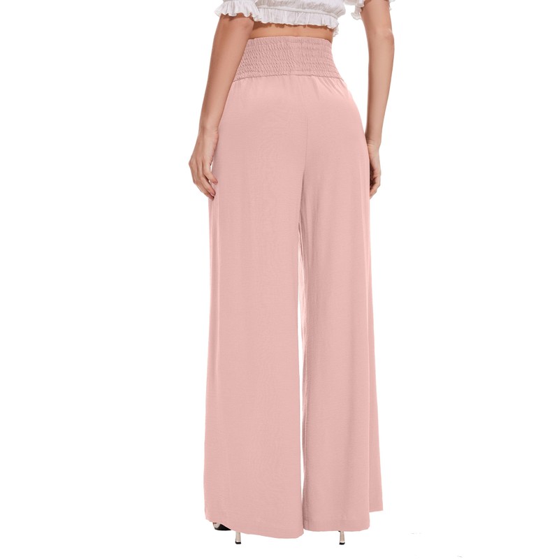 FUNYYZO Womens Palazzo Pants Elastic Waisted Pull On Trousers Casual Wide Leg Long Lounge Pants with Pocket