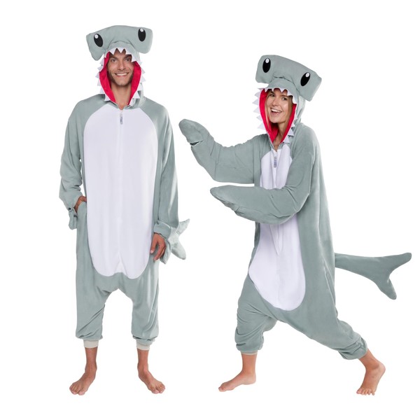 FUNZIEZ! Hammerhead Shark Pajamas - One Piece Cosplay Costume (Grey, Medium)