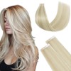 FUOTONBUTY Tape-In Extensions, Real Hair, Double Stitched, Balayage Golden Blonde to Light Blonde, 20 Pieces, 50 g, Invisible Tape Extensions, Tape-On Extensions, Real Hair, 40 cm