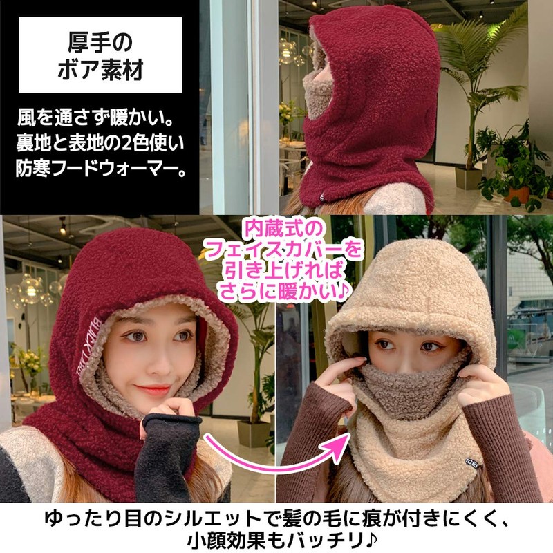 The thick boa material feels good to the touch, and the built-in face cover can be pulled up for an extra warm neck warmer. This hat has a loose silhouette that does not attract marks on your hair, making your face look smaller.