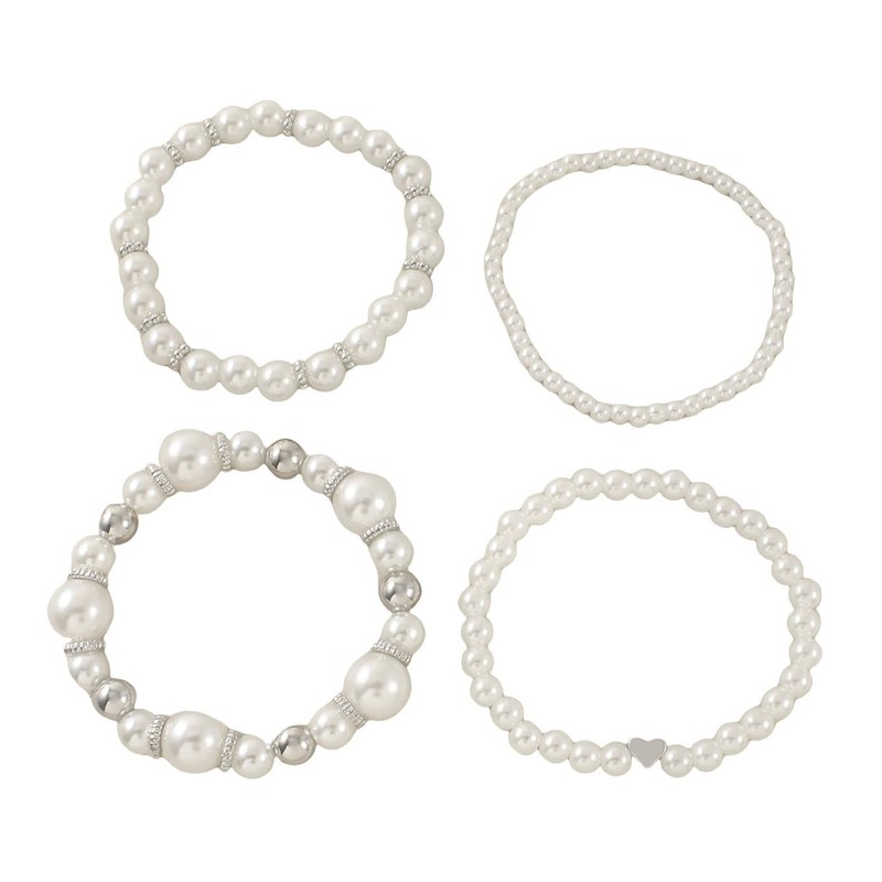 Fuqimanman2020 Chunky Simulated Pearl Stackable Stretch Bracelet Set Beaded Ball Adjustable Multilayered Elastic Bangles for Women Wedding Jewelry, 7 inches, simulated pearl Crystal Metal, simulated