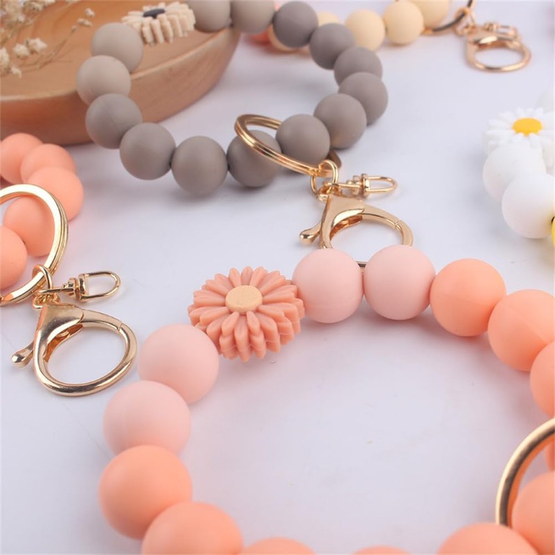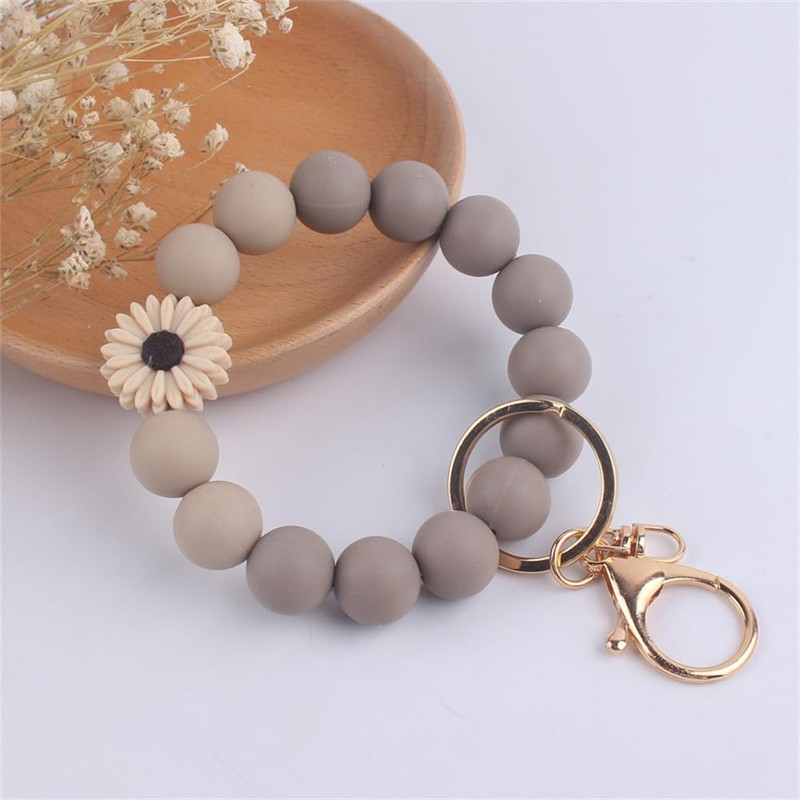 Fuqimanman2020 Daisy Flower Silicone Beads Wristlet Keychain Cute Sunflower Key Ring Holder For Women Girls-Grey