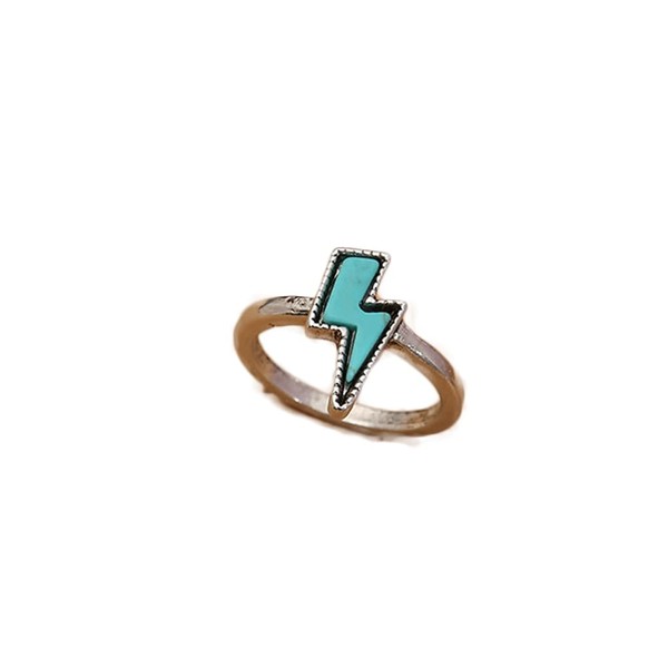 Fuqimanman2020 Western Turquoise Flower Lightning Bolt Adjustable Ring Natural Green Stone Thunder Flash for Women Cowgirls Punk Party Statement Jewelry-Lightning