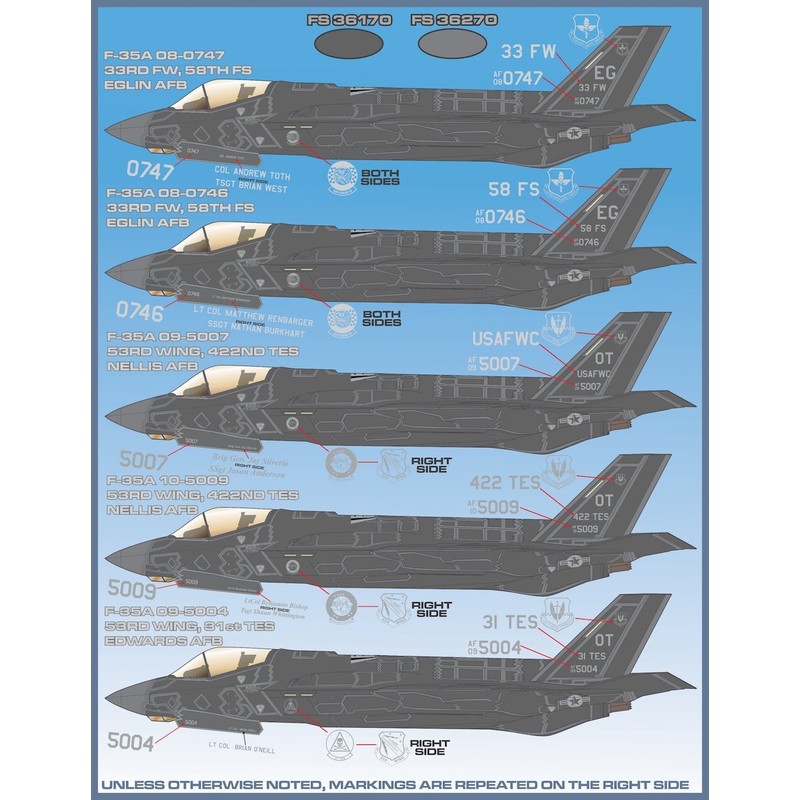 FUR32003 1:32 Furball Aero Design F-35A Lightning II Anthology "Big Scale Lightning II's" [WATERSLIDE DECAL SHEET]
