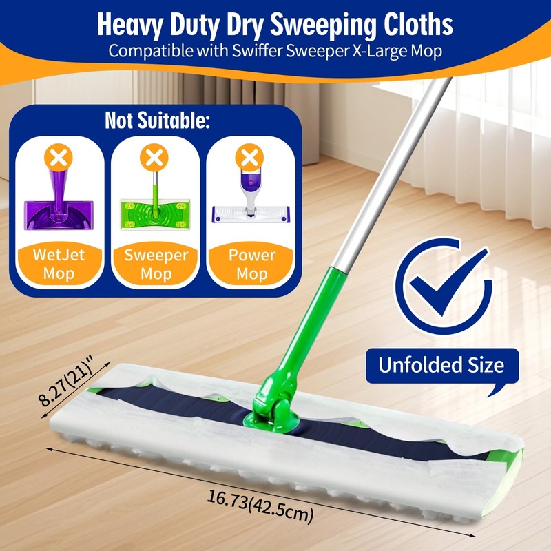 - Fits Swiffer:The disposable XL heavy duty dry sweeping cloths perfectly fit the Swiffer Sweeper XL Mop, you can buy with confidence