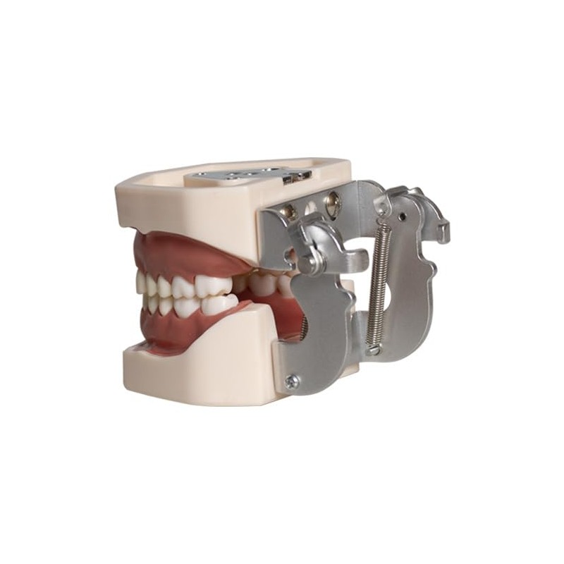 - SILICONE TEETH WITH BRACES: The silicone teeth of this model are fitted with braces, simulating real orthodontic conditions. This allows for a better understanding of oral conditions related to orthodontics and the impact of braces on dental hygiene.