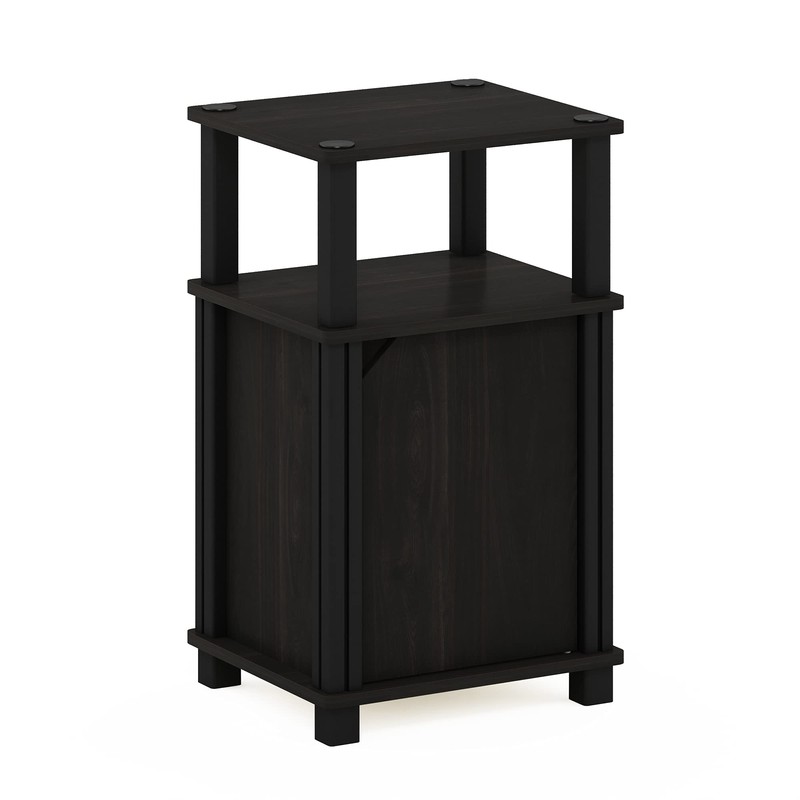 Furinno Brahms 3-Tier End Side Sofa Table/Nighstand with Door, 1-Pack, Espresso/Black