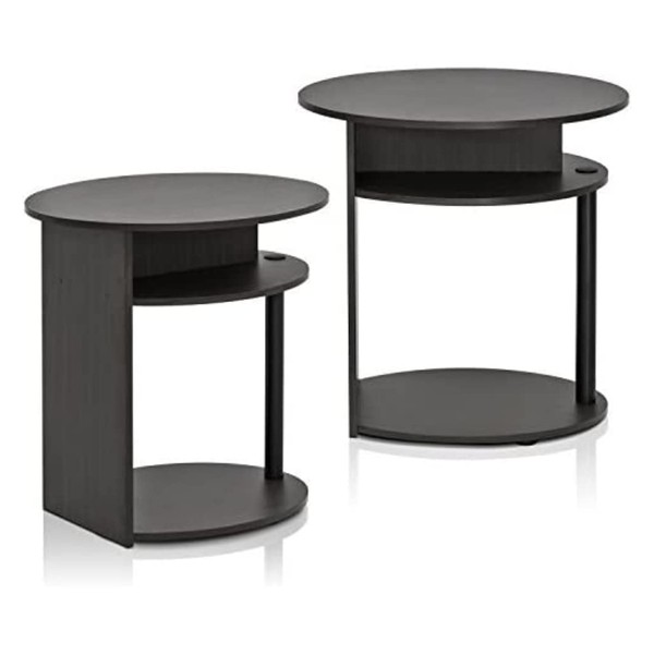 Furinno JAYA Simple Design Oval End Table Set of 2, Walnut,