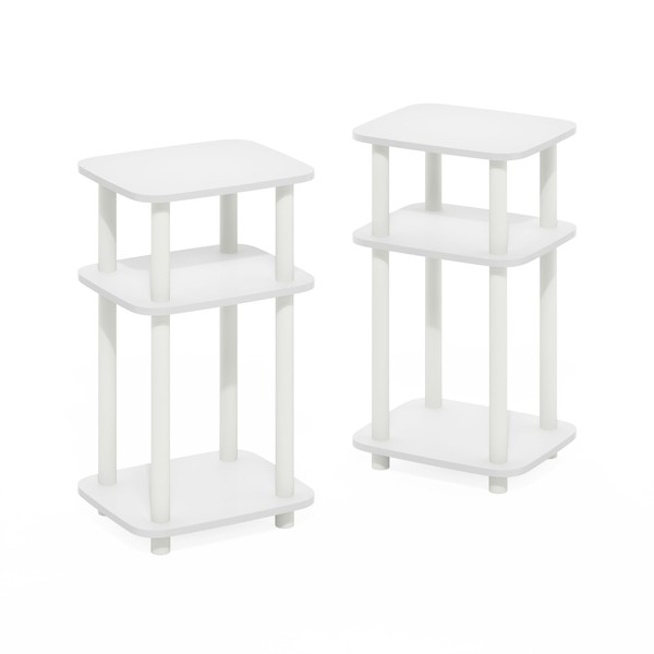 Furinno Just 3-Tier Turn-N-Tube Curve End Table, Side Table, 2-Pack, White/White