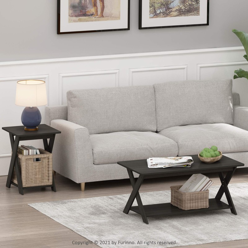 FURINNO Modern Simplistic End Table, 1-Pack Without Tray, Espresso