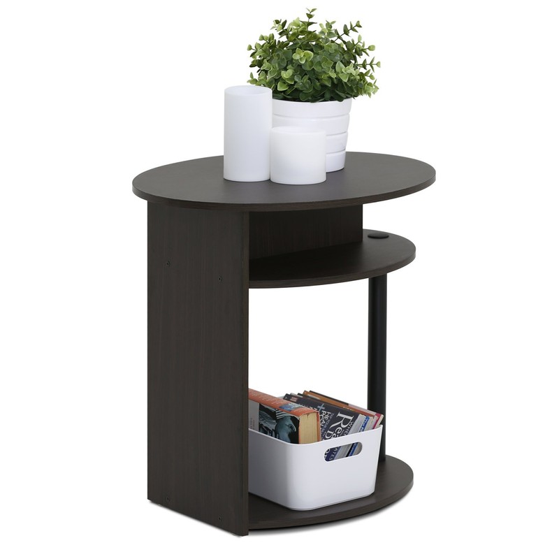 FURINNO Jaya simple design oval end table is designed to fit in your space and fit on your budget. The shelves provide additional storage and display spaces for your handy needs such as snacks, books, etc. It can be used as end table, nightstand, or hallway table. All the materials are manufactured in Malaysia and comply with the Green rules of production. There is no foul smell, durable and the material is the most stable amongst the medium density composite woods. A simple attitude towards lifestyle is reflected directly on the design of FURINNO furniture, creating a trend of simply nature. All the products are produced and packed 100-percent in Malaysia with 90% - 95% recycled materials. Care instructions: wipe clean with clean damped cloth. Avoid using harsh chemicals. Pictures are for illustration purpose. All decor items are not included in this offer.