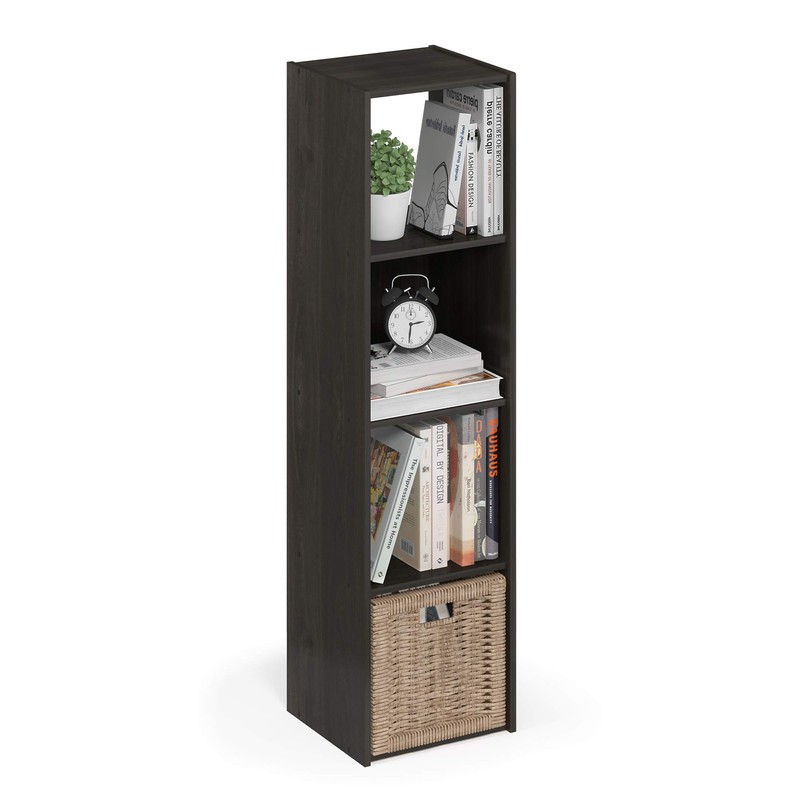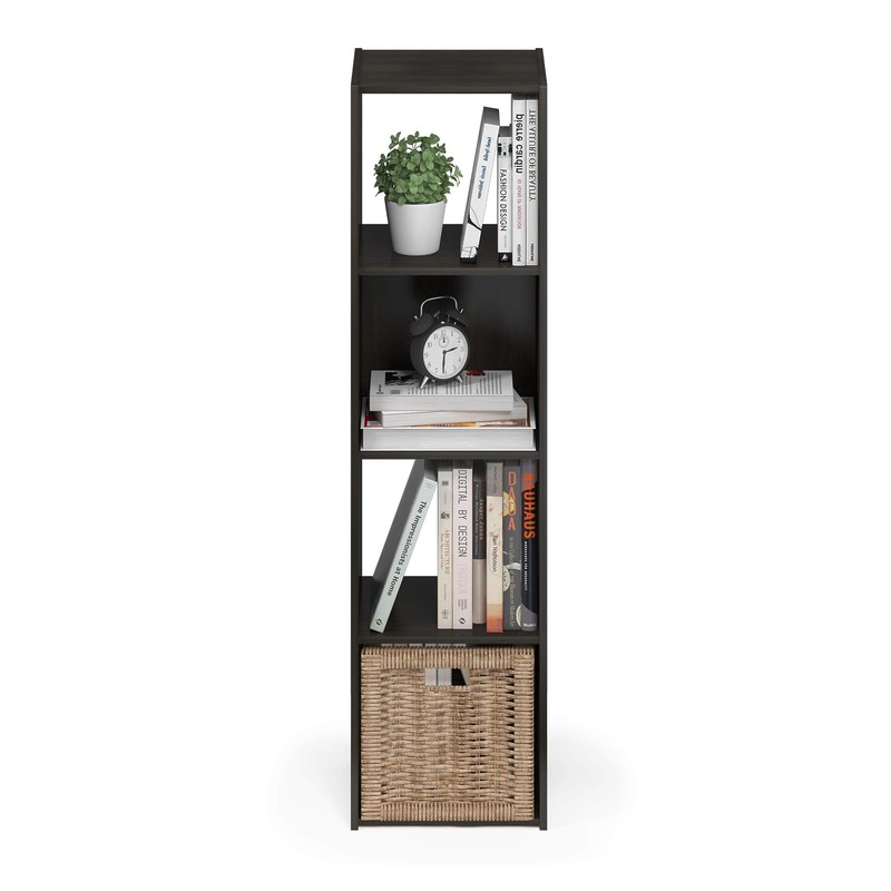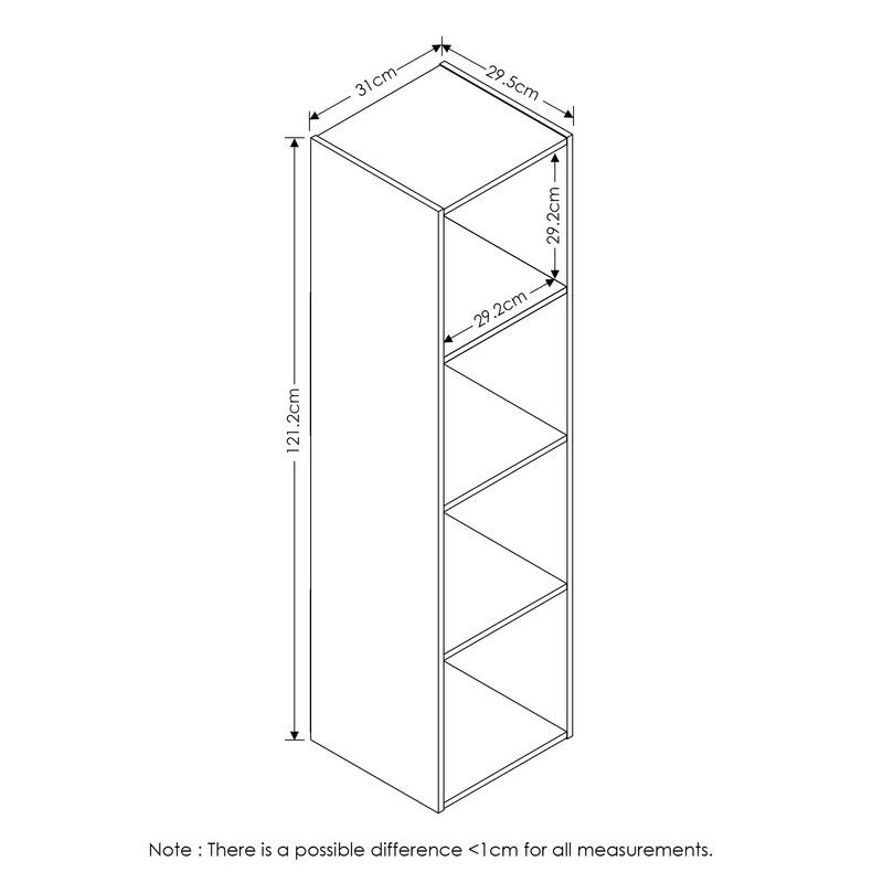 Furinno Pelly Cubic Storage Cabinet, 4x1, build with 4 individual shelves in a vertical position, great for storing and displaying items such as artworks, toys, books, folding clothes or other household necessities. It is made out of medium density fiber board offering great durability and strength, increasing product life spend. They come in multiple colors, Espresso and French Oak Grey, therefore it is customizable to liking. The cabinet is designed to fit perfectly in rooms and utilizing storage place to its maximum potential. The assembly process is made easy with the provided parts and hardware. Assembly instructions are revised repeatedly to ensure that it is clear to read, simple to understand and safe to work. Care instruction: wipe clean with clean damped cloth and avoid using harsh chemical to prevent damage to the furniture. All the pictures are for illustration purposes only; decor items are not included in the set.