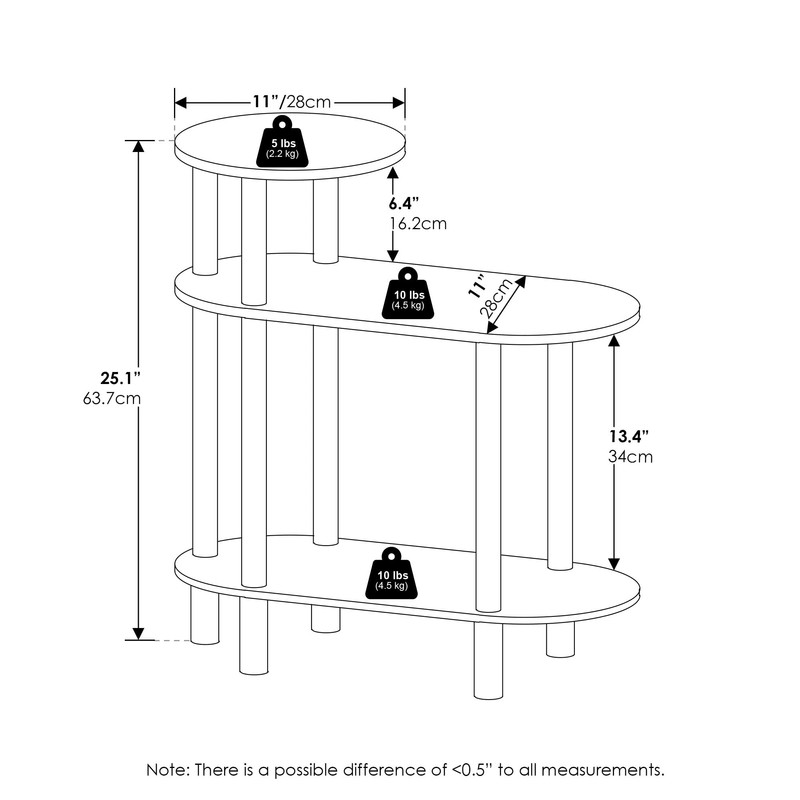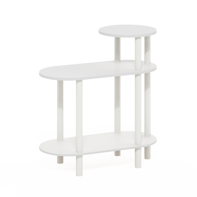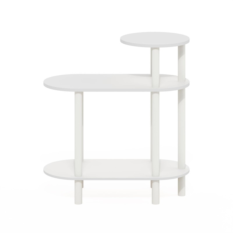 Furinno Turn-N-Tube 3-Tier Oval Sofa Side Table, End Table with Open Shelves, White/White