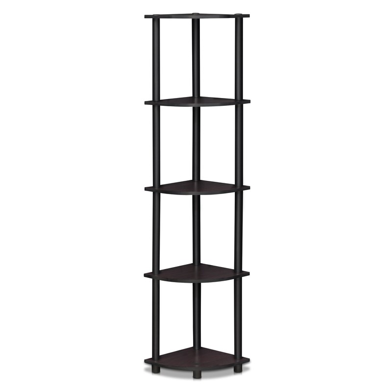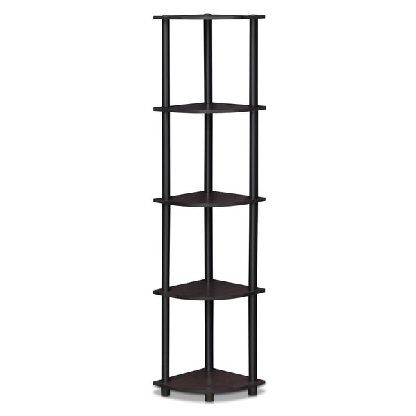 Furinno Turn-N-Tube 5 Tier Corner Display Rack Multipurpose Shelving Unit, Dark Walnut
