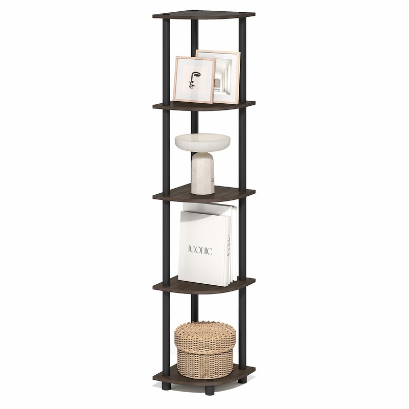 Furinno Turn-N-Tube 5 Tier Corner Shelf, Corner Bookshelf, Display Shelf for Living Room, Bedroom, Brown Grain
