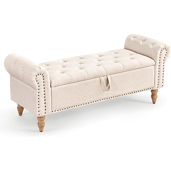Furniliving 51” Storage Bench, End of Bed Bench with Button-Tufted Large Upholstered Storage Ottoman Linen Window Bench with Storage Shoe Cabinet Bench, for Bedroom, Entryway, Closet, Beige