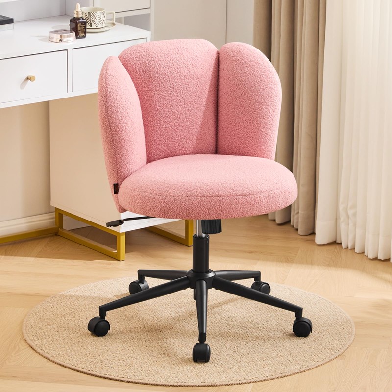 - Unique Vanity Desk Chair: The backrest of this desk chair features a unique flower shape design, covered with soft boucle fabric and thick fluffy cushions that provide ultimate comfort while adding a touch of elegance and adorable to your room.