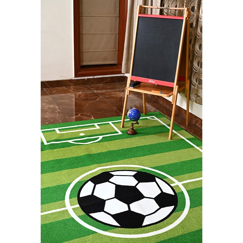 - Contemporary Design: Featuring a vibrant image of a striped soccer field with white markings along with a football in the center, the kids play area rugs sure to become a focal point in your indoor spaces