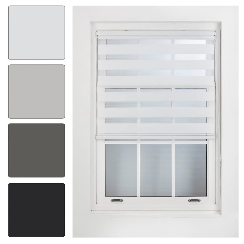 FURNISHED Day and Night Roller Blinds - Zebra Blind Dim or Translucent Vision Roller Shades for Windows and Doors - Dual Layer Fabric, White, 60W x 165H cm