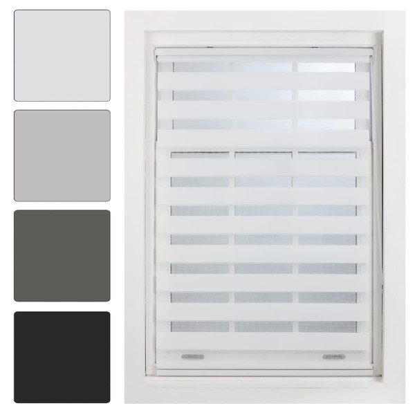FURNISHED Day Night Blinds Made to Measure - Zebra Roller Blind Double Vision Fabric Quick Install Window Shades - Day and Night Blind, White, 60W x 210H cm